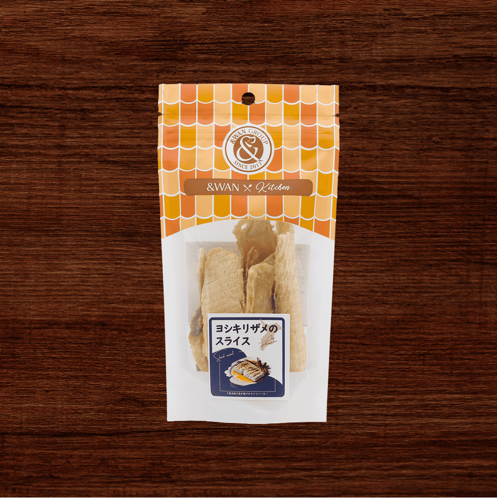 千葉銚子港で水揚げされた新鮮なヨシキリザメを使用した、香りと旨味が凝縮されたジャーキーです。低脂肪で高たんぱく質であることに加え、DHA・ERAやコラーゲン、健康維持に必要なビタミンBも多く含まれています。また、血液をサラサラにするといわれているオレイン酸も多く含まれています。
