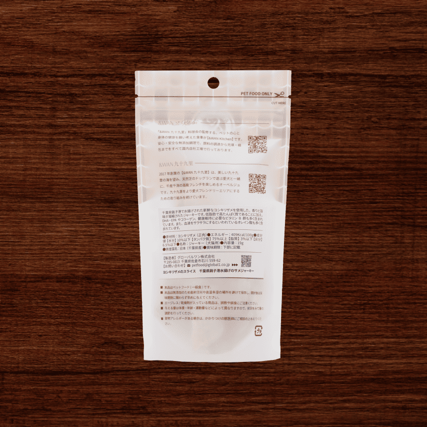 ・ヨシキリザメ(正肉)・エネルギー:409Kcal・100g・成分値【水分】6.5%以下【タンパク質】75%以上【脂質】3%以下【灰分】6.5%以下・名称ジャーキー(犬猫用)