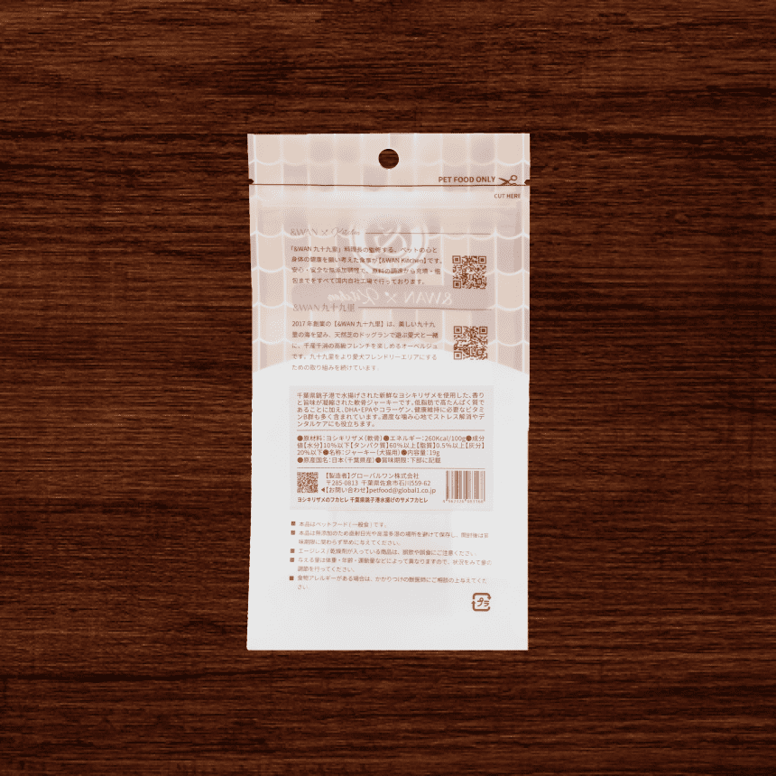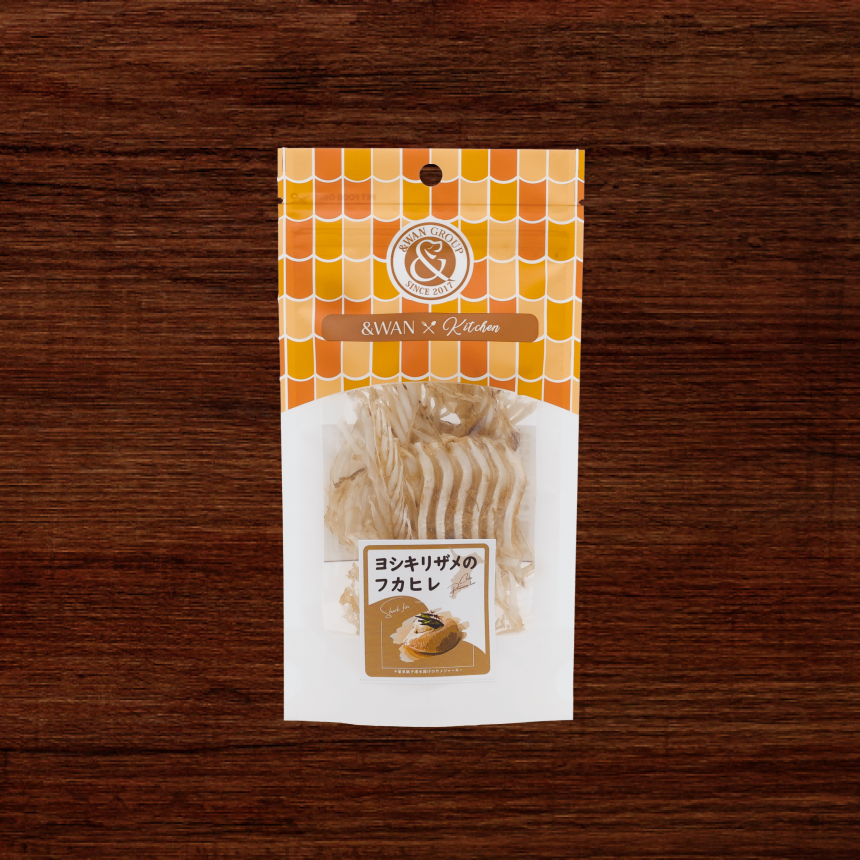 千葉銚子港で水揚げされた新鮮なヨシキリザメを使用した、香りと旨味が凝縮されたジャーキーです。低脂肪で高たんぱく質であることに加え、DHA・ERAやコラーゲン、健康維持に必要なビタミンBも多く含まれています。適度な嚙み心地でストレス解消やデンタルケアにも役立ちます。