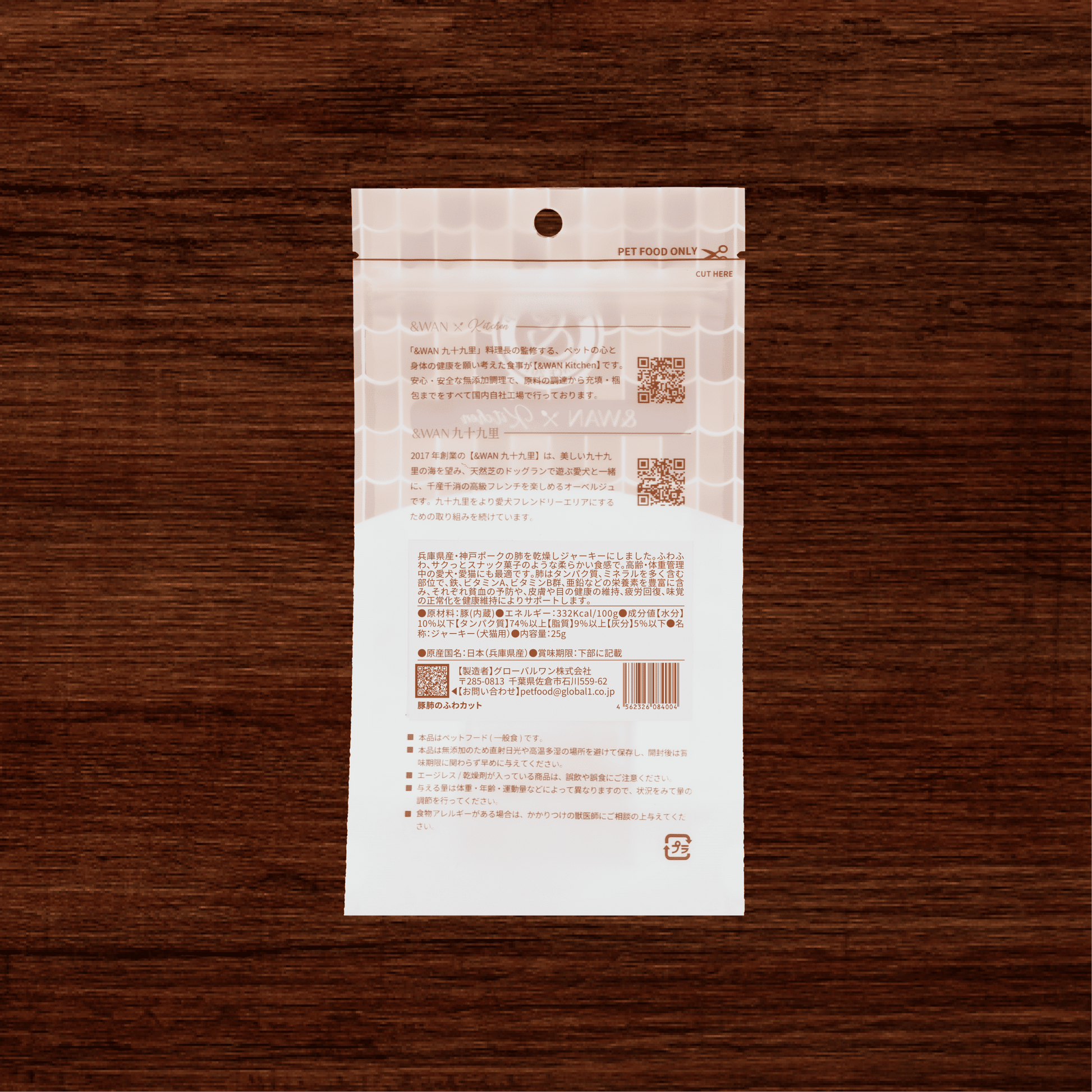 原材料 : 豚(内臓)●エネルギー:332Kcal/100g●成分値【水分】10%以下【タンパク質】74%以上【脂質】9%以上【灰分】5%以下●名称ジャーキー(犬猫用)●内容量:25g●原産国名:日本(千葉県産)